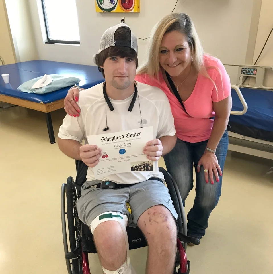 On April 22, my son was in an automobile accident that left him with no feeling below his waist – Something no mother wants to tell her son at the age of 24. After three surgeries at UAB Hospital in Birmingham, Alabama, he was transported to the Shepherd Center in Atlanta, Georgia for rehabilitation. My husband and I both work full-time, but had to make the decision for one of us to stay in Atlanta with Cody, so he could get the rehabilitation that was needed. If it had not been for New Perspective Foundation's financial support, we would not have been able to do that. They spoke with me on the phone and not only offered financial support, but the emotional and heartfelt support they gave was also very comforting. This was a world I never knew existed and it's a comfort to know someone out there understands what we are going through. We will be ever grateful to New Perspective Foundation for the love and support they showed. Thank you from the bottom of our hearts!